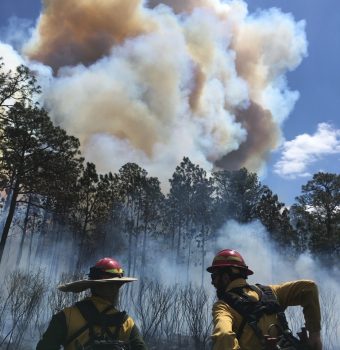 Grand Bay NERR staff work collaboratively with the Mississippi Department of Marine Resources Coastal Preserves on a variety of projects. This photo was taken during a prescribed burn at Deer Island along some of the natural beach habitat.