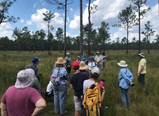 The Grand Bay NERR Savanna Trail is a great place to see seasonal flowering plants in a fire-maintained wet pine savanna. More than 30 species of plants are found in one square meter in places like these, which makes them the most diverse vegetation communities in the U.S. The MSU Master Naturalists come in the fall season each year to learn about these habitats.